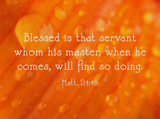 Who then is a faithful and wise servant, whom his master made ruler over his household, to give them food in due season? Blessed is that servant whom his master, when he comes, will find so doing. Assuredly, I say to you that he will make him ruler over all his goods. But if that evil servant says in his heart, ‘My master is delaying his coming,’ and begins to beat his fellow servants, and to eat and drink with the drunkards, the master of that servant will come on a day when he is not looking for him and at an hour that he is not aware of, and will cut him in two and appoint him his portion with the hypocrites. There shall be weeping and gnashing of teeth. (Matt. 24:45-51)