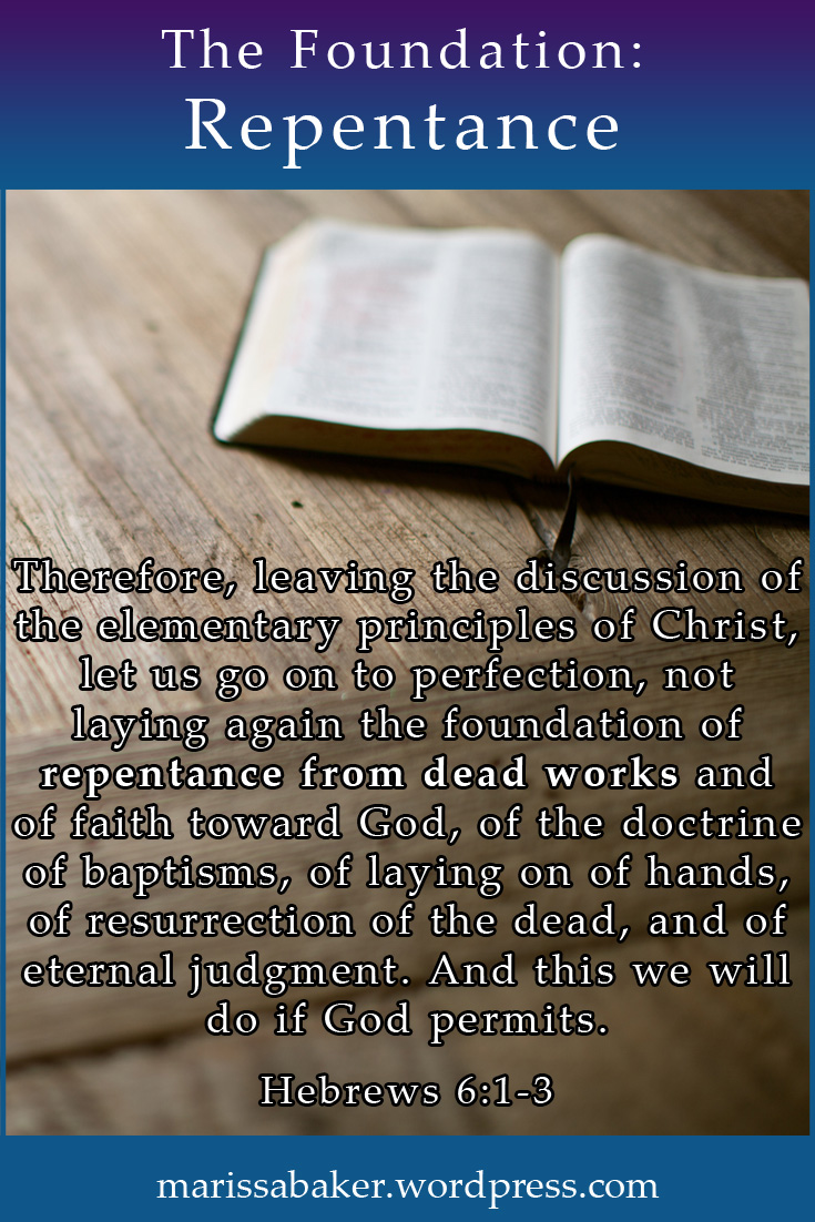 Before we can move on, even to the next foundational principle, we have to repent. We have to realize that we are flawed, sinful human beings with no right to stand before God. Then, we turn away from dead works and turn to God in faith (which is the next foundation listed in Heb. 6).