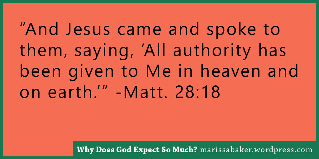 God doesn’t ask unreasonable things of us. Rather, He sets before us a very simple choice: to do good and live, or to do evil and die (Deut. 30:15). In many cases, our real problem isn’t that we don’t understand God or that we’re scared of a God who seems angry — it’s rebellion against His right to expect certain things from His creation. We don’t like the idea of an ultimate universal authority, but how we feel about it doesn’t change the fact that God is sovereign and that the Lord Jesus Christ has authority over everything and everyone (Matt. 28:28).