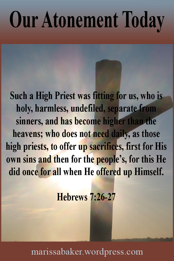 While those things are important, I thank God through Jesus Christ my Lord that I’m not trying to atone for myself. There’s no way I could ever do enough or be good enough to undo my own sins. Today, we do have a High Priest and He has filled the ritual sacrifices with His perfect sacrifice (Heb. 7:23-28). The “central part” of Yom Kippur isn’t missing for Christians who keep this Holy Day — it’s more real than ever.