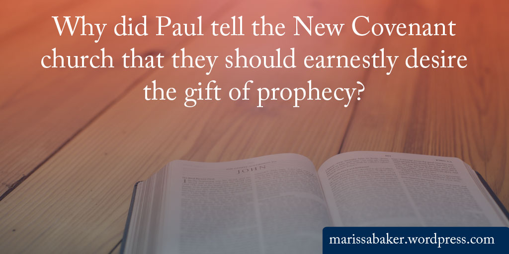 A basic definition for this word is to “speak forth by divine inspiration” (Thayer, G4395). Usually when we think of people prophesying, we think about the prophets like Elijah, Isaiah, Jeremiah, and Ezekiel. We think of men God used to foretell future events, confront sinful Israel, and write books of the Bible. We probably don’t think about prophets in the modern age.Why did Paul tell the New Covenant church that they should earnestly desire the gift of prophecy? | marissabaker.wordpress.com