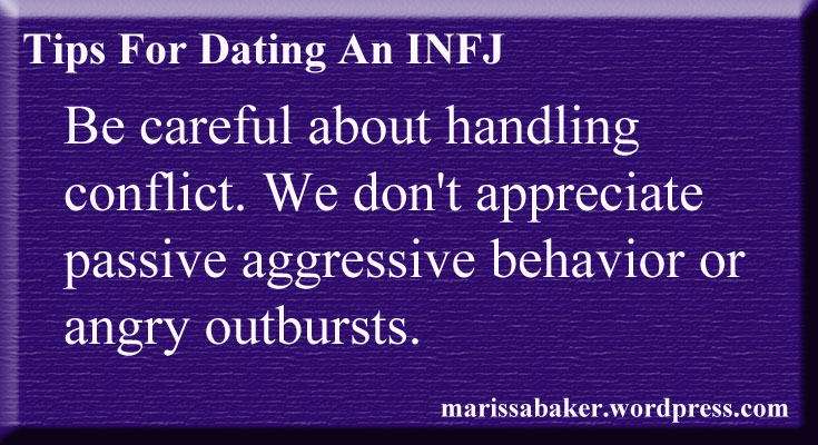 We know learning how to handle conflicts in a healthy way is key to a good relationship, but that doesn’t make confrontation any easier for us. There are two big mistakes people make in handling conflict with INFJs: 1) being passive aggressive or giving us the silent treatment, and 2) angry emotional outbursts. The first makes us feel like you don’t care or you’re trying to manipulate us and the second one makes us feel unsafe. We can forgive hurt caused in arguments (we’ll probably hurt you and need forgiveness, too), but we need to trust you didn’t mean to hurt us. We want someone who’s willing to work through conflicts in a non-threatening way.