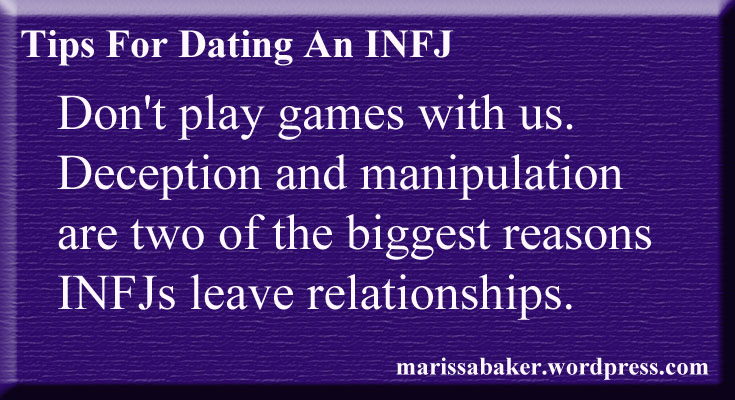 Deception and manipulation are two of the biggest reasons INFJs leave relationships. If we feel like you’re not being sincere, we’re out of here. If we find out you’re purposefully deceiving us, it’ll be well-nigh impossible to win our trust back. If we find out you weren’t really serious about the relationship, we’ll feel betrayed. If you try to control us, we’ll walk. As a general rule, just be honest and straight-forward with us even if it’s about something that you’re pretty sure would annoy us. We would far rather hear a truth that hurts us now than learn you were snaring us in a beautiful lie.