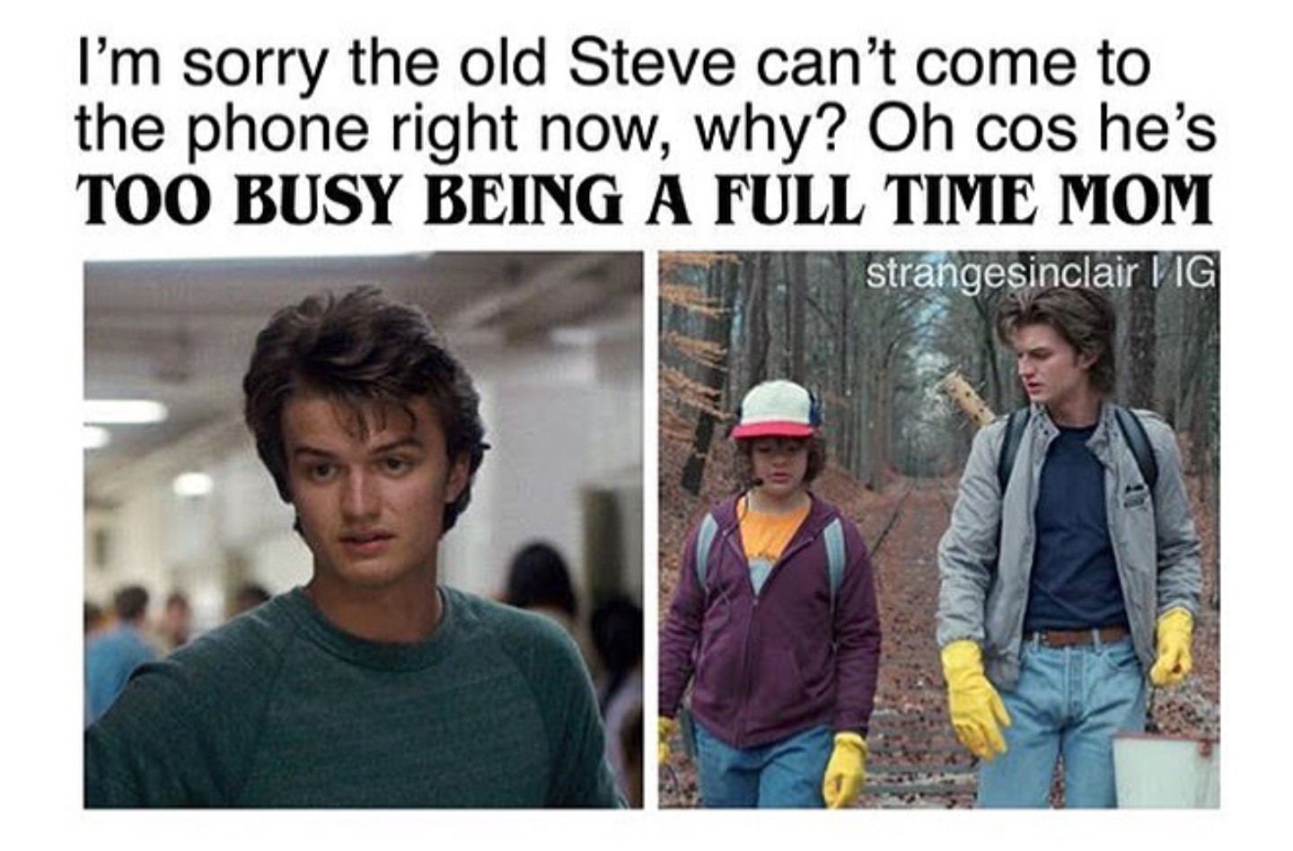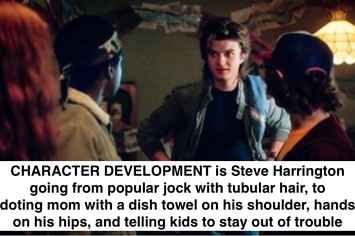 • I really hated Steve in the first season, but his bonding with Dustin, his taking an interest in the kids, and his willingness to step up and “be the man” (not a MOM, internet, a MAN who protects anyone younger and more vulnerable than himself) made him one of my favorite characters!