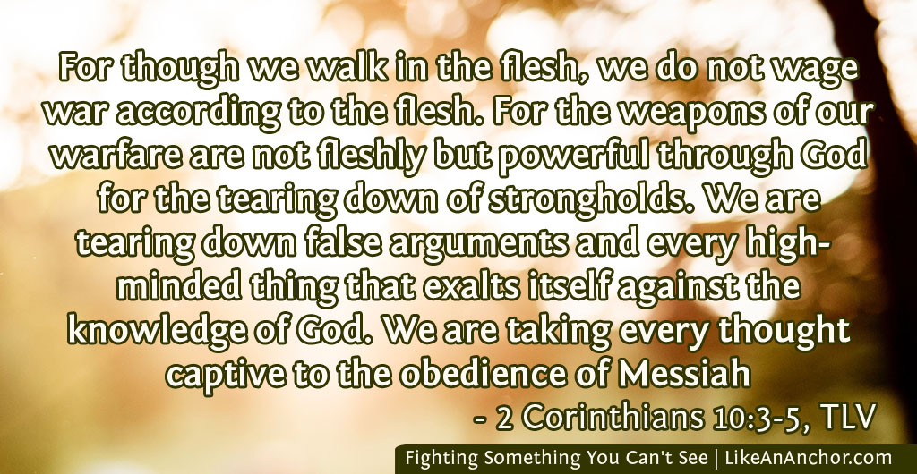 For though we walk in the flesh, we don’t wage war according to the flesh; for the weapons of our warfare are not of the flesh, but mighty before God to the throwing down of strongholds, throwing down imaginations and every high thing that is exalted against the knowledge of God, and bringing every thought into captivity to the obedience of Christ (2 Cor. 10:3-5, WEB)