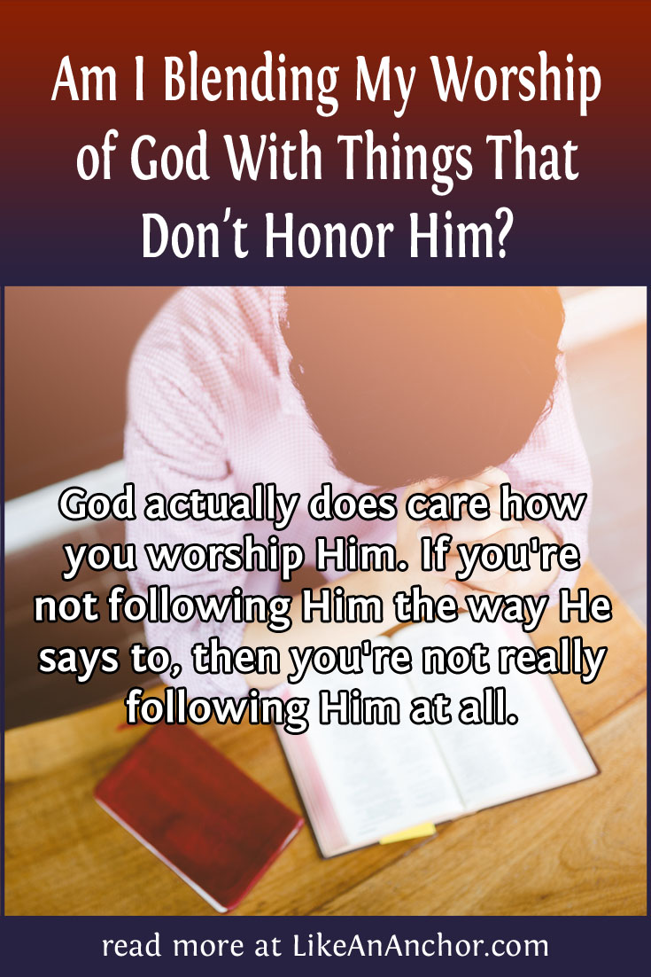 The problem is, God actually does care how you worship Him. If you’re not following Him the way He says to, then you’re not really following Him at all. He is “a jealous God” and He does not accept half-hearted or divided affection. You can’t honor Him by worshiping in ways He does not approve or if you’re also trying to worship something else. It’s not good for us to have divided loyalties or identities. We need to find wholeness in seeking our Lord the way He desires us to seek Him.