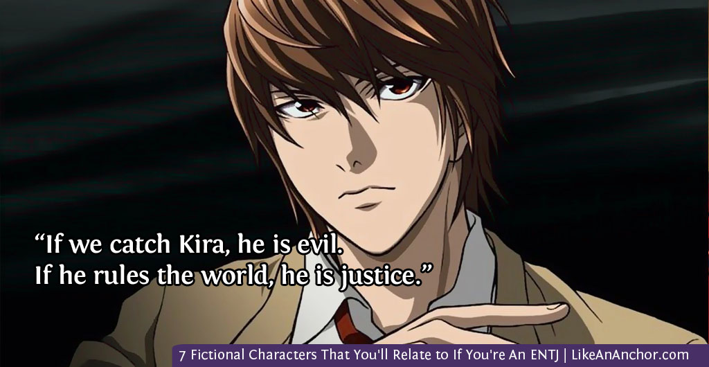 I have not actually seen or read Death Note, but Light was mentioned by several ENTJs on message boards and Reddit threads where they talked about which characters they felt were also ENTJs. For an excellent article on why Light can be typed as an ENTJ, click here.