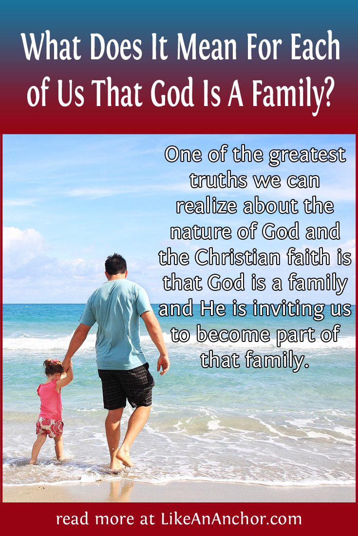 One of the greatest truths we can realize about the nature of God and the Christian faith is that God is a family and He is inviting us to become part of that family. God’s most-used analogies for how He relates to us are family-based, focusing on marriage and children. Both the Father and Son deeply desire a relationship with us and to make us part of Their family. In fact, as far as we can tell, that’s the main reason They created people in the first place.