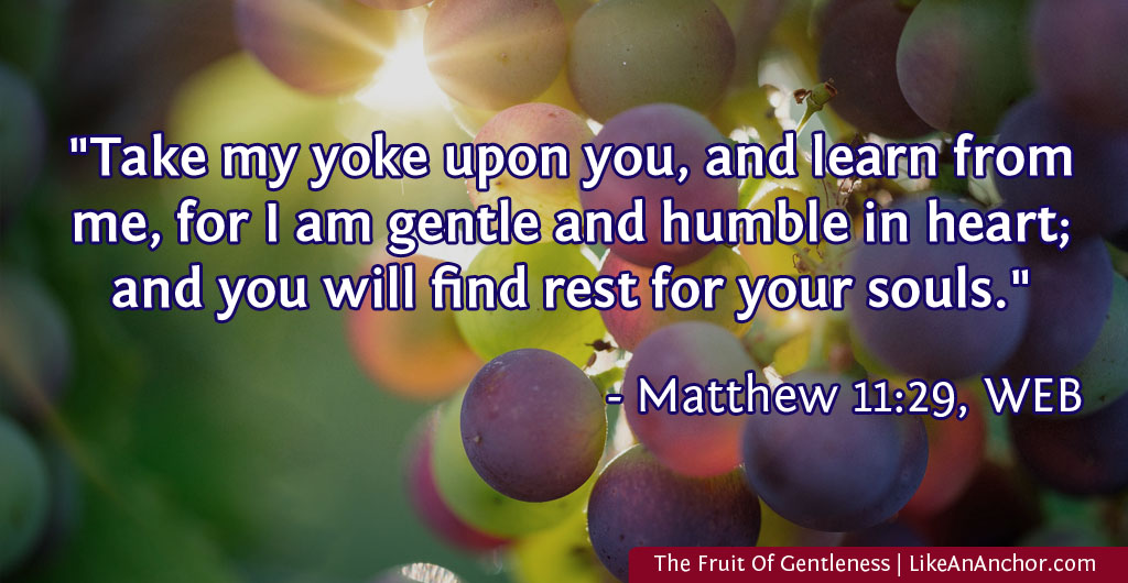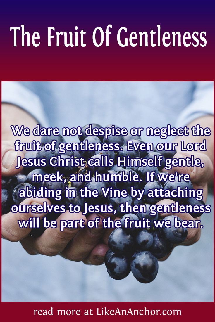 We dare not despise or neglect the fruit of gentleness. Humble, poor, gentle, needy, and meek people are precious to God. Even our Lord Jesus Christ calls Himself gentle, meek, and humble. If we’re abiding in the Vine by attaching ourselves to Jesus (John 15:1-8), then gentleness will be part of the fruit we bear.