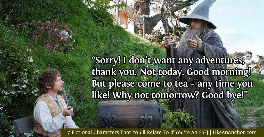 I’m sure Bilbo isn’t the only ESFJ to have someone take advantage of his hospitality. ESFJs tend to be sociable, outgoing, friendly people ready and willing to help those in need. That doesn’t mean they like it when people exploit their good-naturedness, but they still feel obligated to respond in the way that’s socially correct.