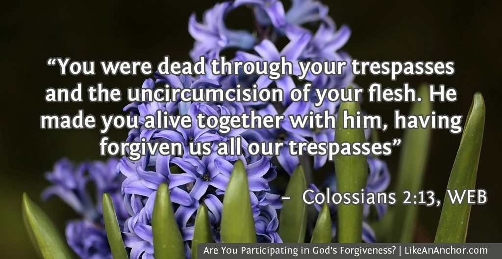 The first thing to do if you want forgiveness is ask. We receive forgiveness after we repent of our past sins and come to Jesus. Forgiveness is not initiated by us — it is an act of rich grace available because of the death of Jesus (Eph. 1:3-7; Col. 1:14; 2:13). There is a participation aspect, though.