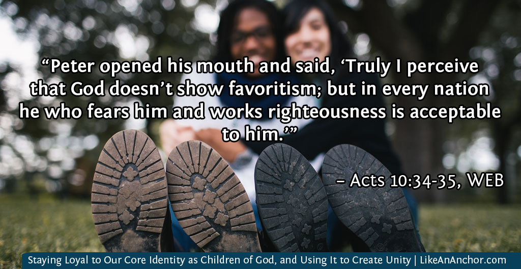 Everyone who accepts God’s call to become part of His family — regardless of race, gender, background, wealth, etc. — is treated the exact same way by God. If you fear Him and work righteousness, then He accepts you without partiality or favoritism (Acts 10:34-35). We have all “received the Spirit of adoption, by whom we cry, ‘Abba! Father!'” People from many different backgrounds who were once outside God’s family now have all the rights and privileges of His children, even to the point of being called “joint heirs with Christ” (Rom. 8:15-17).