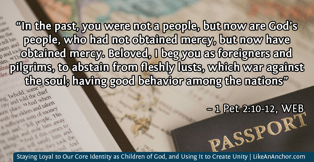 That’s our primary identity. Being “children of God” should be the most important way we see ourselves and it should unite us with others who have that identity. That doesn’t mean we all need to look and act exactly the same, though. This godly identity does not erase all our other identities any more than being in a relationship with God erases our personality. (Note: if an identity conflicts with God’s law and way of life, we need to get rid of it or change our relationship to it. He does not, however, ask us to change something like skin color or personality type — that’s how He created us.)