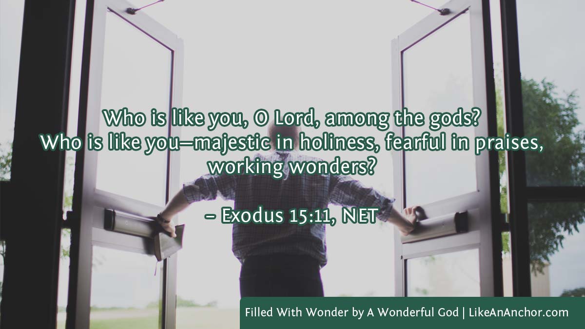 Holding on to wonder is important to faith. We need to make sure we recognize the awesome majesty of the God Who Does Wonders. Now, that doesn’t mean we just believe whatever we see; we are warned about “lying wonders” that could lead people astray at the end times (2 Thes. 2:9; Matt. 24:24; Mark 13:22). We must exercise discernment to avoid being taken in by counterfeit Messiahs, but at the same time we should not let our vigilance make us blind to true wonders nor dull our sense of wonder (Acts 2:16-21; 13:38-41). A sense of wonder can be hard to come by in today’s world, but it is one of the things that we should feel for our amazing, wonderful God.
