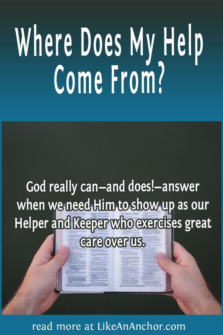 This psalm starts with a question: “Where does my help come from?” Immediately, the writer answers, “My help comes from Yahweh.” It’s a rhetorical question in this psalm, but for many people it’s a very real question that we wonder about. For those of us asking this question or one of it’s many variations, the psalmist goes on to share reasons that we can count on Yahweh to come through as our helper and keeper.