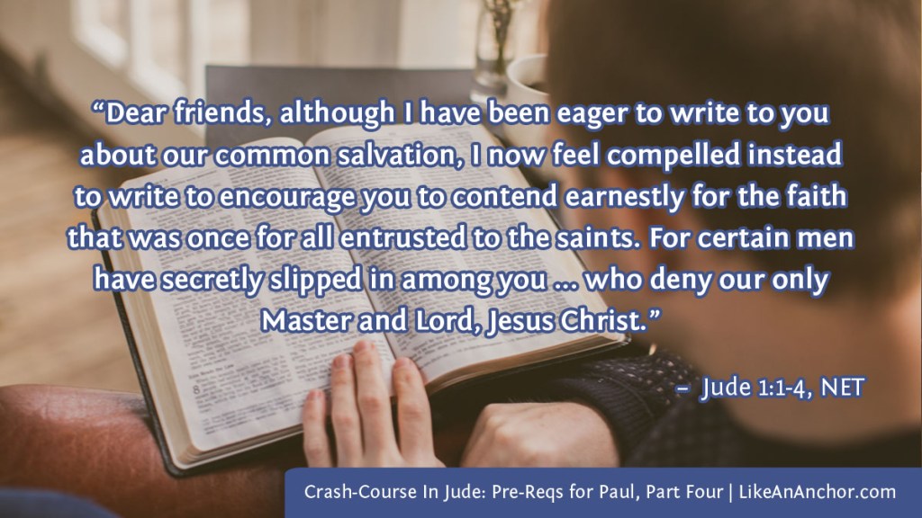 Jude addresses his letter “to those who are called, wrapped in the love of God the Father and kept for Jesus Christ” (Jude 1:1, all scriptures from NET). Like most other general epistle writers, he has a broad audience that includes all Christian believers. He said he’d planned to write “about our common salvation,” but even though that topic is exciting he felt compelled to write about something else. He wrote “to encourage you to contend earnestly for the faith that was once for all entrusted to the saints” (1:3). The NET footnote on this verse says, “The verb ἐπαγωνίζομαι (epagōnizomai) is an intensive form of ἀγωνίζομαι (agōnizomai). As such, the notion of struggling, fighting, contending, etc. is heightened.” When Jude talks about us contending for our faith, he means we need to fight and struggle for it with focus and determination.