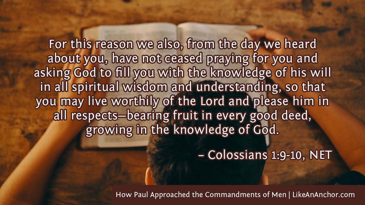 Paul states that he’s talking about ordinances that are “human commands and teachings.” He’s not telling us to reject God’s commands! Rather, he’s saying to follow God the way God tells us to follow Him instead of the legalistic worship practices piled on by human beings.