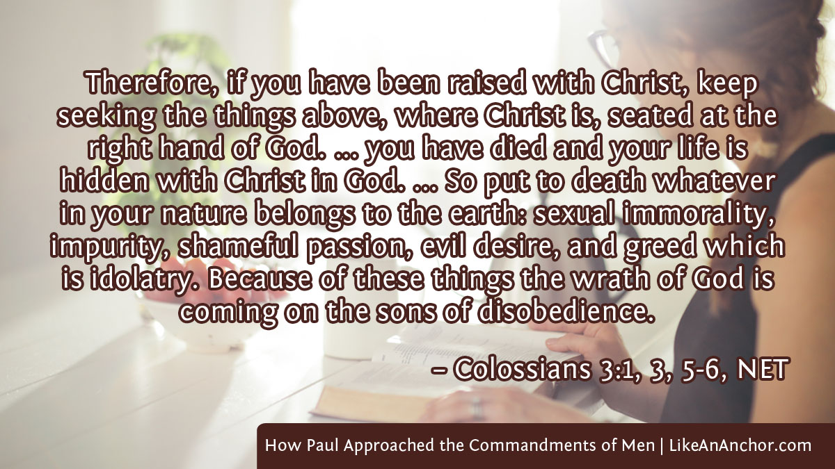 With that understanding, we can go back to Paul’s writings. Knowing he would never contradict Jesus’s teachings gives us framework for understanding difficult passages like Colossians 2. Here, his focus is on following Jesus rather than human beings. One example Paul uses is the issue of circumcision. There was a faction in the early church that believed new male converts had to be circumcised according to the Abrahamic covenant before they could receive salvation. But that was an aspect of the Old Covenants that pertained to the flesh and didn’t carry over. Rather, the emphasis is now on “circumcision not made with hands” on a spiritual level (Col. 2:11-12, WEB).