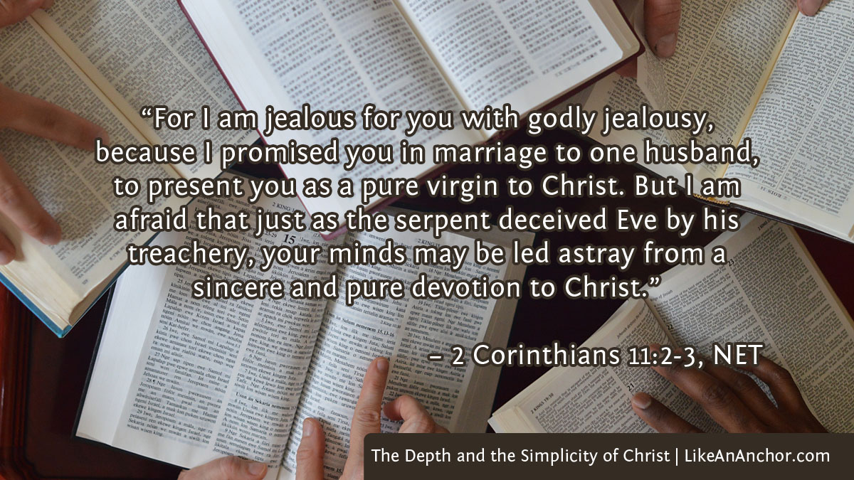 But I am afraid that somehow, as the serpent deceived Eve in his craftiness, so your minds might be corrupted from the simplicity that is in Christ.
