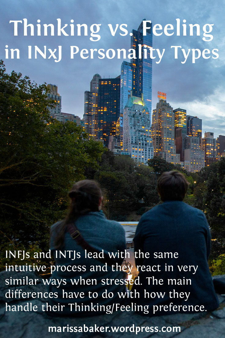 My personality type is INFJ and my sister’s is INTJ. It would be well-nigh impossible to assume we share a personality type, but if you don’t have that contrast living with you (or if you’re a little less extreme on your T/F preference) I can see how deciding which type is your best fit could be a challenge. INFJs and INTJs lead with the same mental process and they react in very similar ways when stressed out. The main differences between the two types have to do with how they handle their Thinking/Feeling preference.