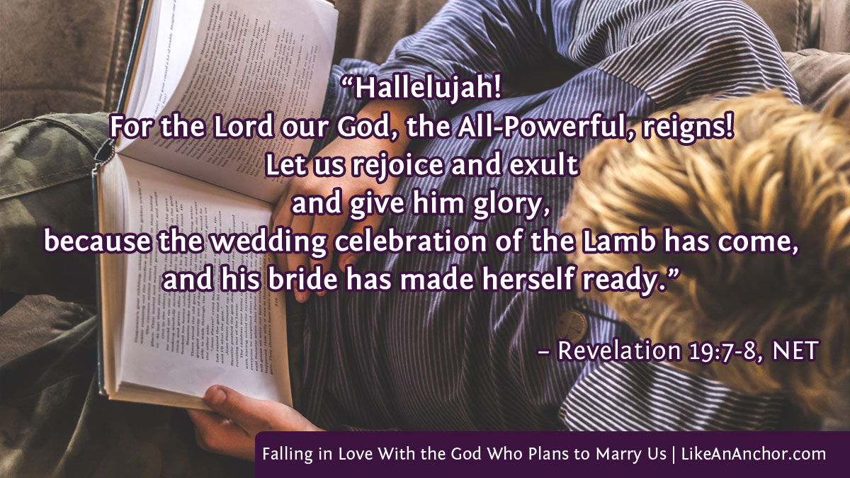 I know the idea of being romantically in love with God and having Him in love with us makes some people uncomfortable. For some, thinking of Jesus as lover as well as Lord is a struggle; the in-love emotion seems a strange thing to try and balance with the respect due God. I suspect it’s a particularly weird analogy for men in the church, who are asked to picture themselves as a bride for their spiritual relationship to Christ while also modeling His role as Husband in their relationship with their own wives if they get married (Eph. 5:25-33). Still, church as bride and Jesus as Groom is one of the most common analogies for our relationship used in scripture, so it’s worthwhile to try and wrap our minds around it.