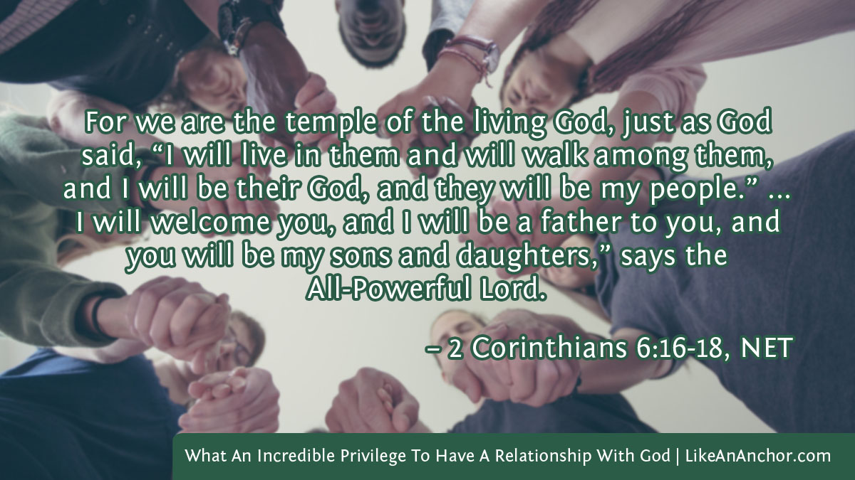 Today, if I want to thank God for something, I can do so very easily. I can approach the Father directly in prayer through the name of Jesus Christ whenever I want, and it’s as if I’m stepping into the most holy parts of the temple to come into God’s presence (John 16:23-27; Heb. 10:19-22). There aren’t restrictions on when I can do that, or things that make me so unclean I can’t come to Him in prayer. Even if I sin (which results in a type of defilement that still damages relationship with God), I still get to go to God directly through Jesus to repent and ask for forgiveness (1 John 1:5-10; 2:1-6). I don’t have to go through any other person or do any rituals in order to access God.