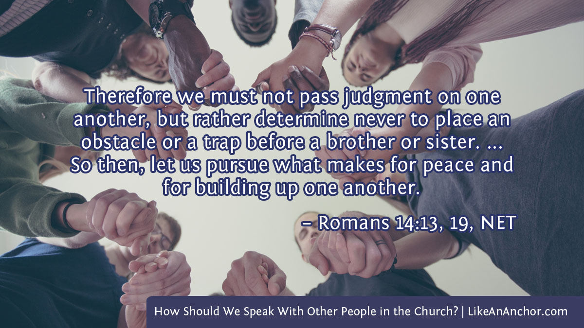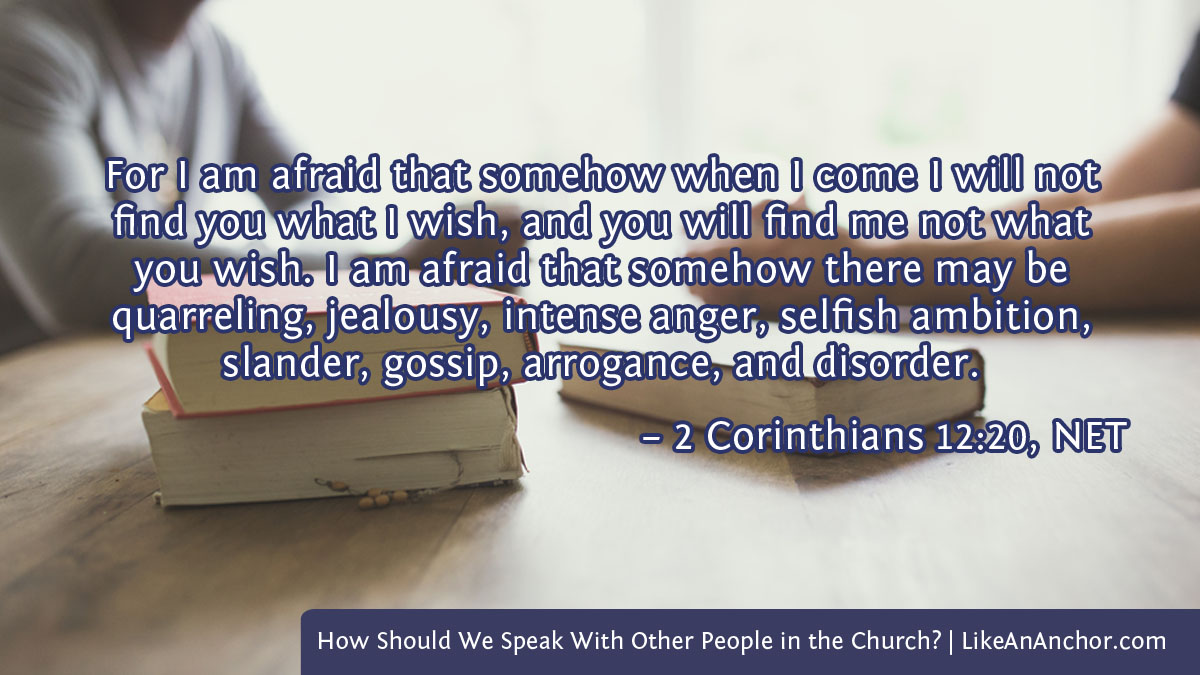 Though we’ll spend quite a bit of this post on definitions and examples from scripture that highlight things we should not do when speaking with other people in the church, I think the take-away message is positive. There are so many things that God and His writers tell us that we should be focusing on in our interactions that there’s no need to dwell on the negative things. We need to know what we shouldn’t be doing so we can avoid them, but the bulk of our attention should be on building up, encouraging, teaching, growing, loving, and cultivating peace and unity in the church.