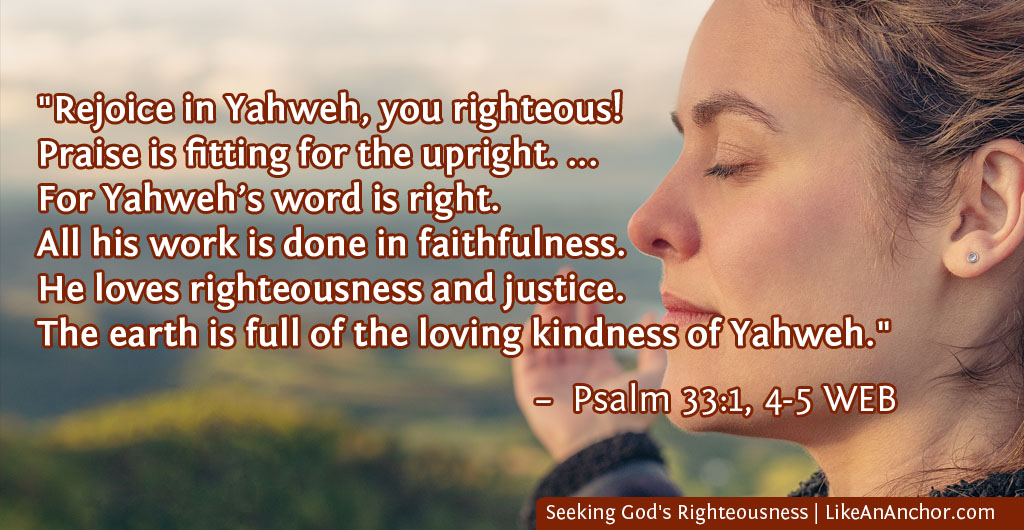 Our God loves righteousness (Ps. 11:7; 33:5). He even reveals it as one of His names which He puts on His people — Yahweh Tsidqenu, the Lord our Righteousness (Jer. 23:6; 33:16). In the Matthew 6:33 verse we opened with, Jesus doesn’t say “seek to be righteous” or that we should seek righteousness in general. He’s very specific. We are to seek God’s righteousness.