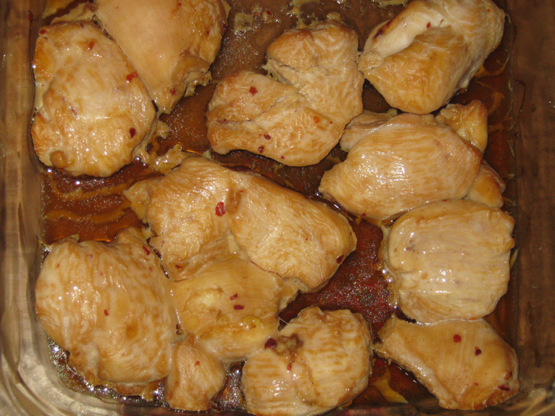 Couple days ago I wanted to do a stir fry with chicken as a the main dish, rather than stir fry as a side, but didn’t feel like something as sweet as my Sesame Stir Fry or a recipe which required quite so much time/effort to cook the chicken as the Simple Chicken Stir Fry. So I made something up. It’s an easy recipe — just throw the chicken and marinade ingredients together, mix up some sauce, cook the chicken, add vegetables, and then pour the sauce on at the last minute. I ground some peppercorns over it to make it look pretty and so I could call it pepper chicken. Enjoy!