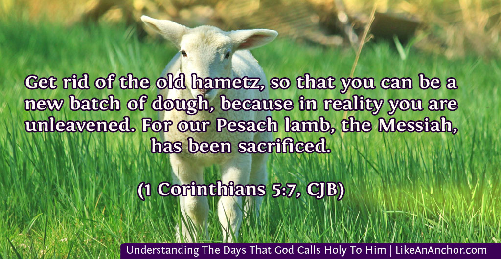 Purge out the old yeast, that you may be a new lump, even as you are unleavened. For indeed Christ, our Passover, has been sacrificed in our place. Therefore let us keep the feast, not with old yeast, neither with the yeast of malice and wickedness, but with the unleavened bread of sincerity and truth.